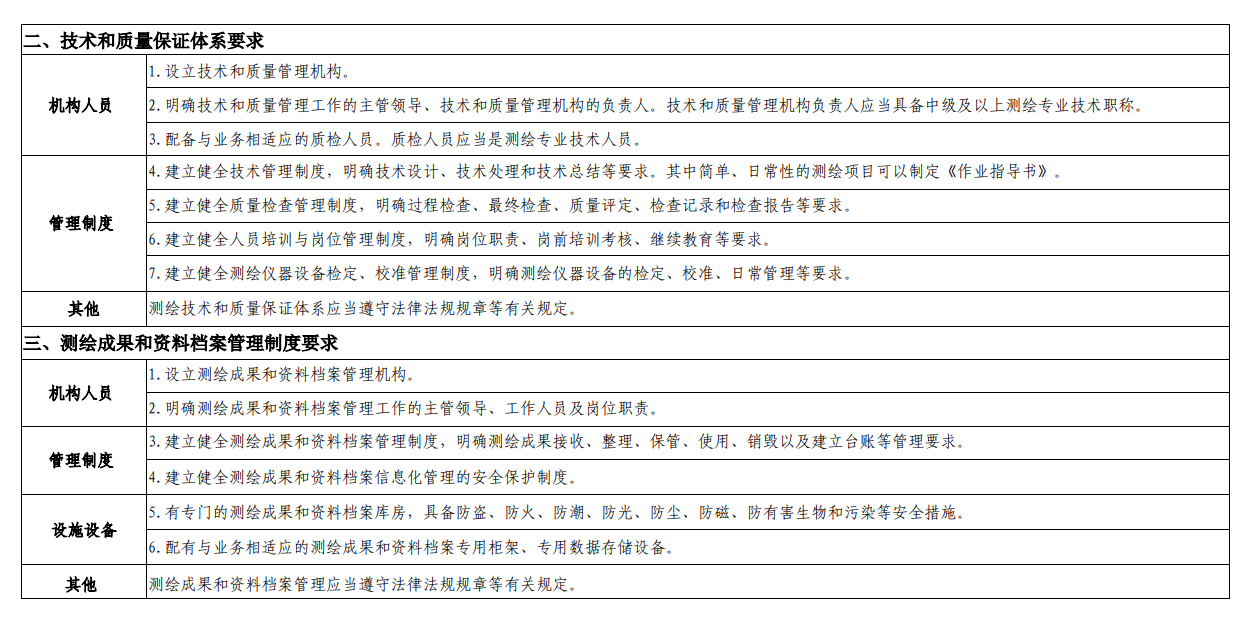 (四)有健全的技術(shù)和質(zhì)量保證體系、安全保障措施、信息安全保密管理制度以及測繪成果和檔案管理制度。